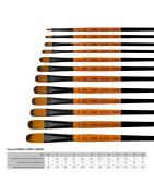 Filbert brushes are made of golden synthetic hair with dark tip, nickel plated seamless brass ferrules and short handles.