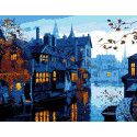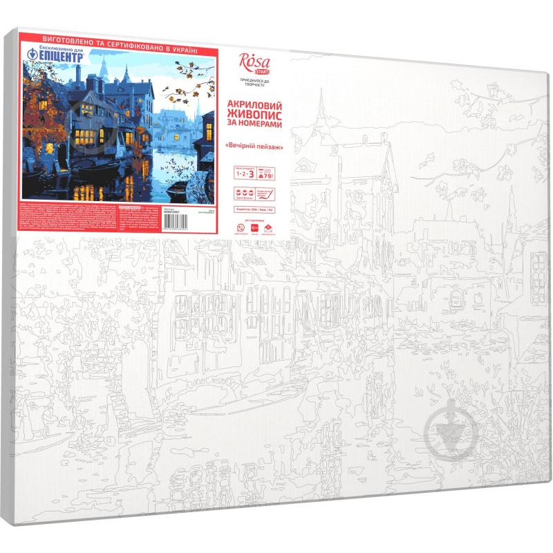 Kit, acrylic painting by numbers Evening Landscape 907. In the kit: canvas, brush, acrylic paints. Size 35x45cm.