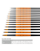 Sintetinio, apvalaus plauko teptukai trumpu koteliu.