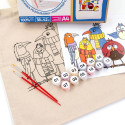 Medvilninio maišelio 38x42cm dekoravimo rinkinys Rosa, juokingi paukščiai. Rinkinyje: medvilninis maišelis 28x42cm su kontūrais, akrilinių dažų rinkinys, teptukai, pavyzdinis paveiksliukas, kaip dekoruoti maišelį. Baigus dekoruoti maišelį, palikti jį 48 valandoms išdžiūti, paskui lygintuvu prie 30-40 C temperatūros jį užfiksuoti, tarp lygintuvo ir maišelio naudojant popierių arba medvilninį audinį.